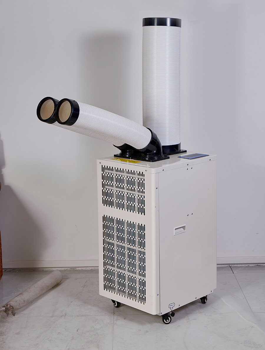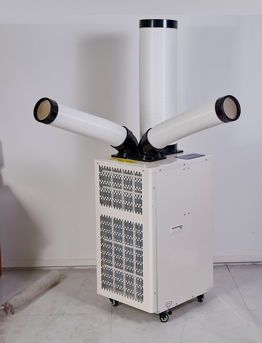 空调整体采用一体式免排水设计,不分内外机,在采用压缩机制冷的同时还可以达到免排水的效果